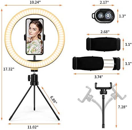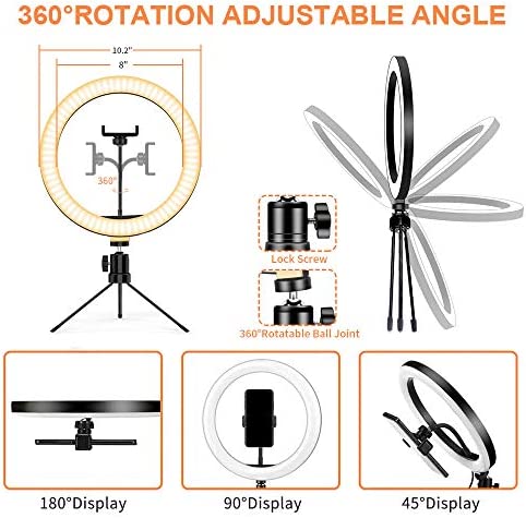 At 10.2 inches, this selfie ring light packs a powerful punch with 10 brightness levels and 3 light modes, giving you the versatility to create any lighting situation you desire. The included tripod stand ensures stability and flexibility, allowing you to position the light at the perfect angle for your needs.