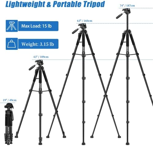 Introducing the 74″ Tripod Camera Tripods – the perfect companion for all your photography and videography needs. This heavy-duty tall camera stand tripod is designed to offer maximum support and stability, ensuring that your equipment stays safe and secure while you capture stunning photos and videos.